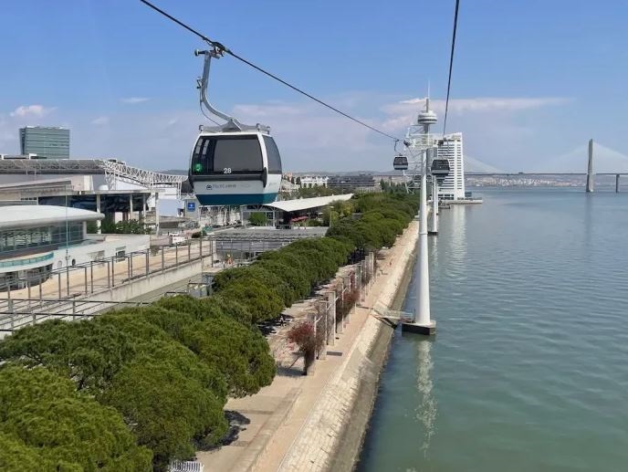 Linha de transporte de pessoas ou de materiais por meio de cabo suspenso.